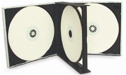 Triple-3 CD Jewel Case Holds Up to 3 CDs in One Case. Clear case with triple black CD holder snap-in tray, pre-assembled. Clear face comes with a hinged center. Black frame is designed to last and is casted from heavy weight hard plastic. Triple Jewel Case Protects your CD or CDR from dirt, scratches, moisture, heat and rough handling. Dimensions: 142.4 x 124 x 23.8 (MM). Material: Polystyrene. Read more...