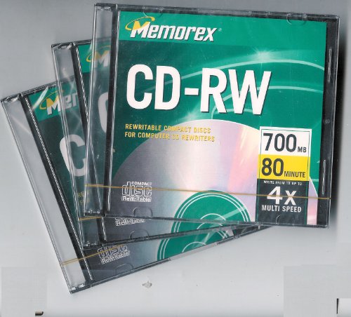 Memorex (832045-03C) 4x CD-RW Rewritable Compact Disc for Computer CD Rewriters Jewel Case Storage Media (3 pack)Individually Wrapped Read more...