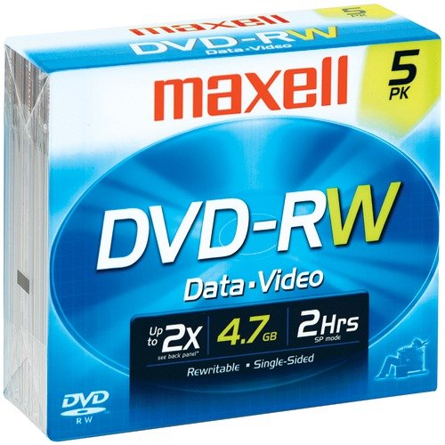 MAXELL 635125 4.7 GB DVD-RWS (5 PK WITH JEWEL CASES). 4.7 GB.2 HOURS.ONCE RECORDED, DVD-RW DISCS CAN BE READ BY LATER GENERATION DVD PLAYERS.RECORD, ERASE & RE-RECORD DVDS COMPATIBLE WITH DVD-R/RW DRIVES & RECORDERS.5 PK WITH JEWEL CASES. 100% safe & secure shopping; Superior customer service. Read more...